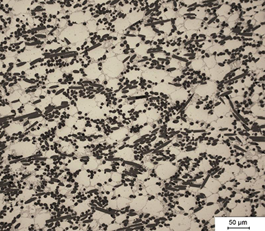 Schliffe einer MMC mit Matrixlegierung AlSi7Mg und 25% Verstärkung durch Carbonkurzfasern